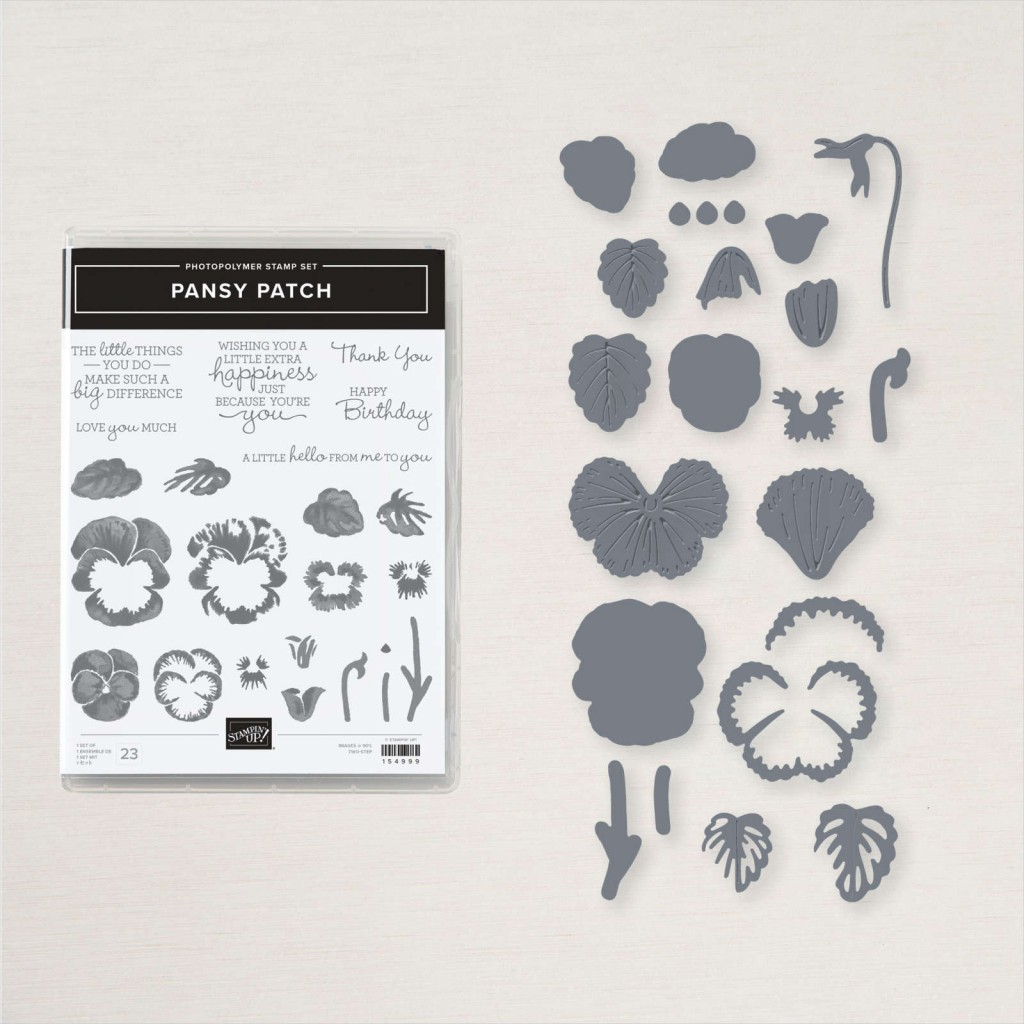 The first option use the pretty floral theme, based around Pansy Petals Designer Series Paper (DSP), and Pansy Punch Bundle. These items are on page 28 & 29 of the Annual Catalogue. You might notice the pansy flowers and leaves. In this example, they all all die cut from the DSP.