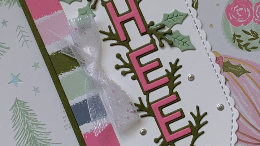 Words of Cheer Bundle by Stampin’ Up! is a great ‘goto’ bundle for Christmas, birthdays or other celebrations. I have concentrated on a Christmas theme in this design and have paired it with foil accented Whimsy & Wonder Specialty Designer Series Paper (SDSP). It is stunning. Both of these items are in the July-December 2021 Mini Catalogue. Words of Cheer…